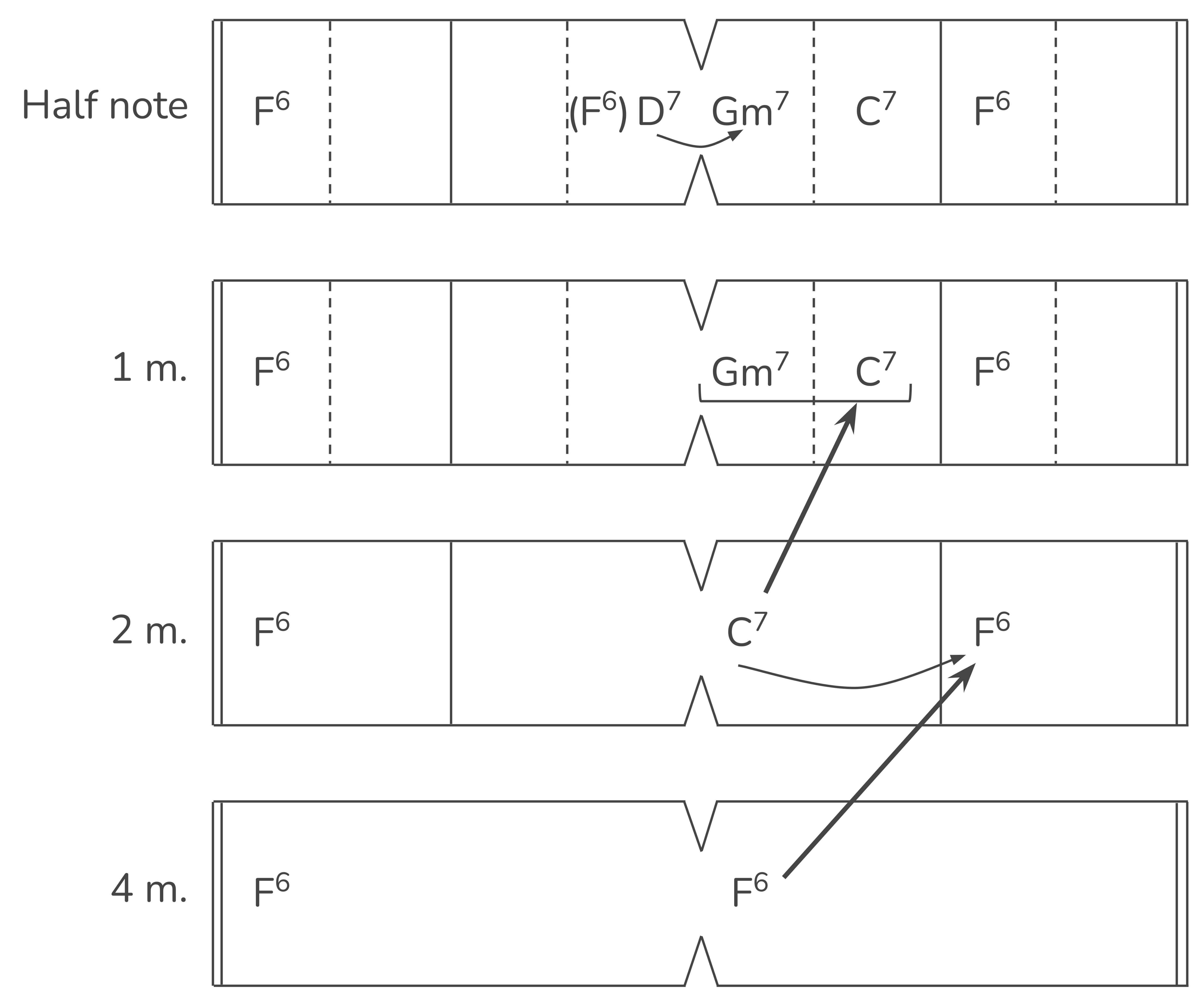 Example 15. Geyer’s demonstration of hierarchical relationships in Ellington’s “Just Squeeze Me.” Adapted from Geyer 2021 (107, Figure 66).