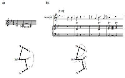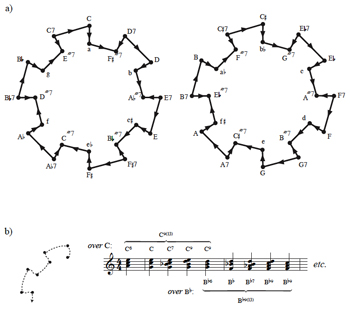 Example 13b suggests, though, such twelve-chord “Hamiltonian” paths lack the voice-leading consistency of the omnibus progression, despite the fact that they can be built on a descending chromatic bassline.(21) The subgraph realization of
