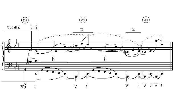Beethoven, Sonata Op. 10, no. 1, i, mm. 270–284, recapitulation’s codetta