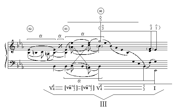 Beethoven, Sonata Op. 10, no. 1, i, mm. 82–94, end of exposition’s second theme