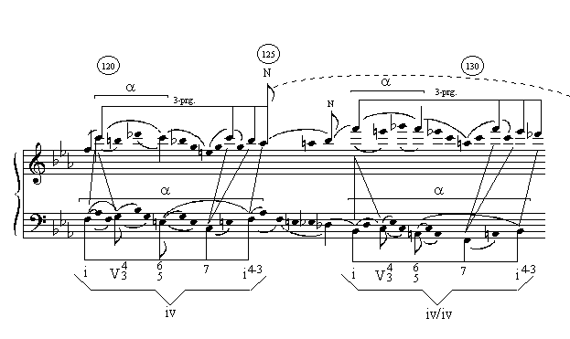 Beethoven, Sonata Op. 10, no. 1, i, mm. 118–133, middle of development