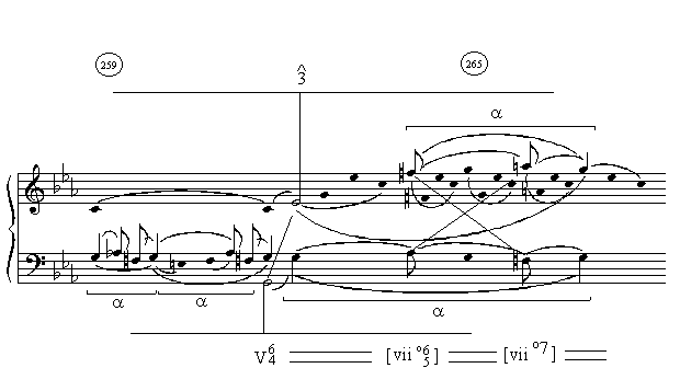 Example 9. Beethoven, Sonata Op. 10, no. 1, i, mm. 259–267, latter part of recapitulation’s second theme
