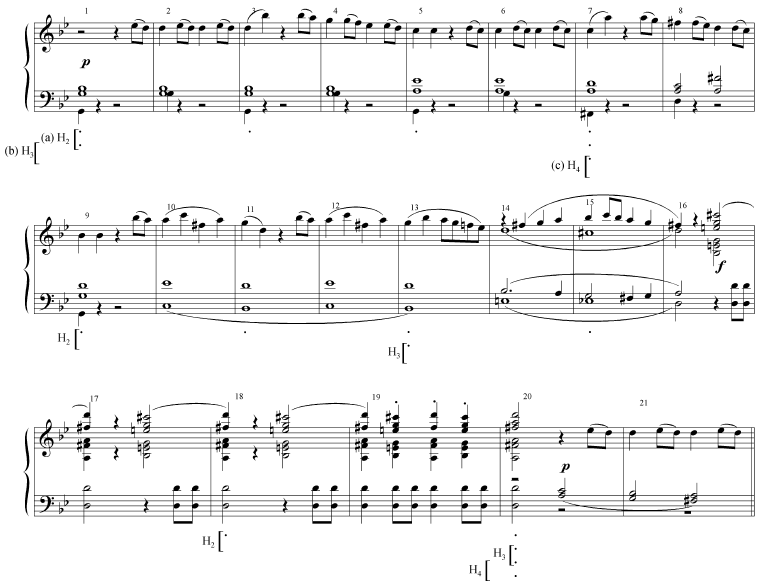 Example 18. (a) H2 in the first MSE (mm. 1-21) of Mozart/Walter, (b) H3, (c) H4 (extremely fragile) [GIF Format] | Change to DjVu |