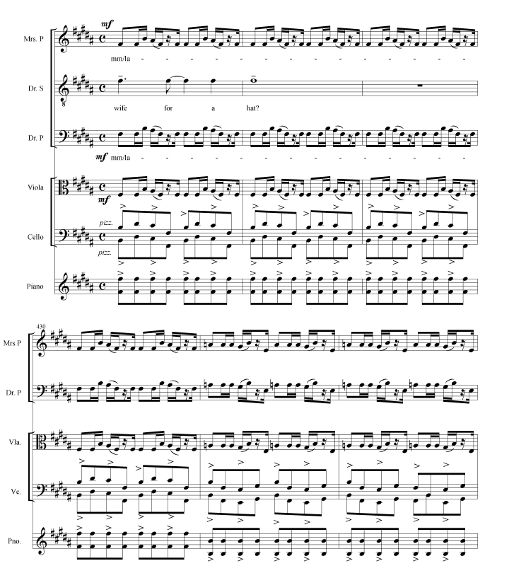 Example 7b. Nyman, "The Man Who Mistook His Wife for a Hat," mm. 427-435 [GIF format] | Change to DjVu |