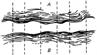 Figure 1. Saussure's "plane of vague, amorphous thought" (A) and "the equally featureless plane of sound" (B)
