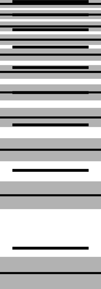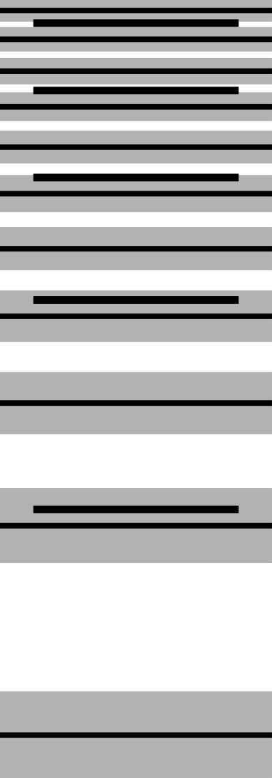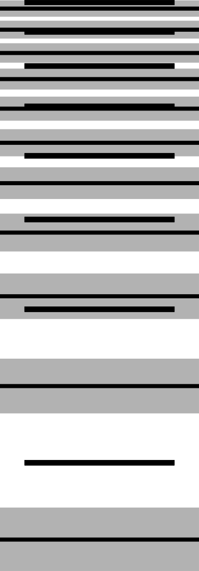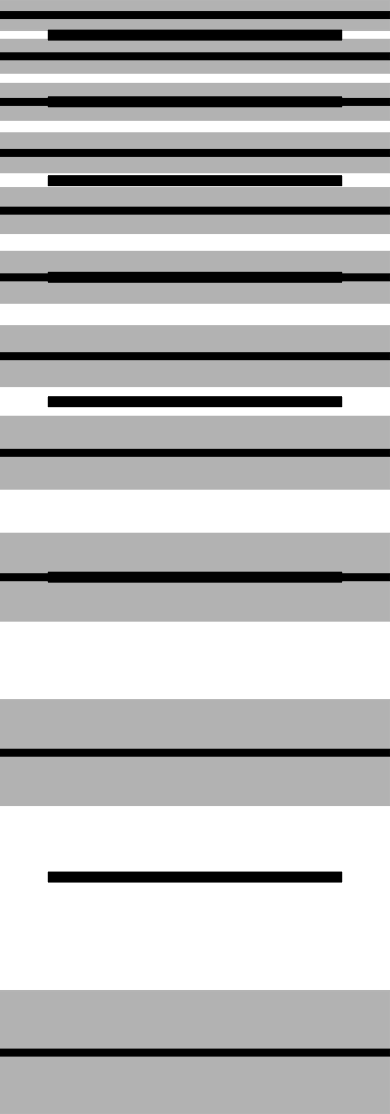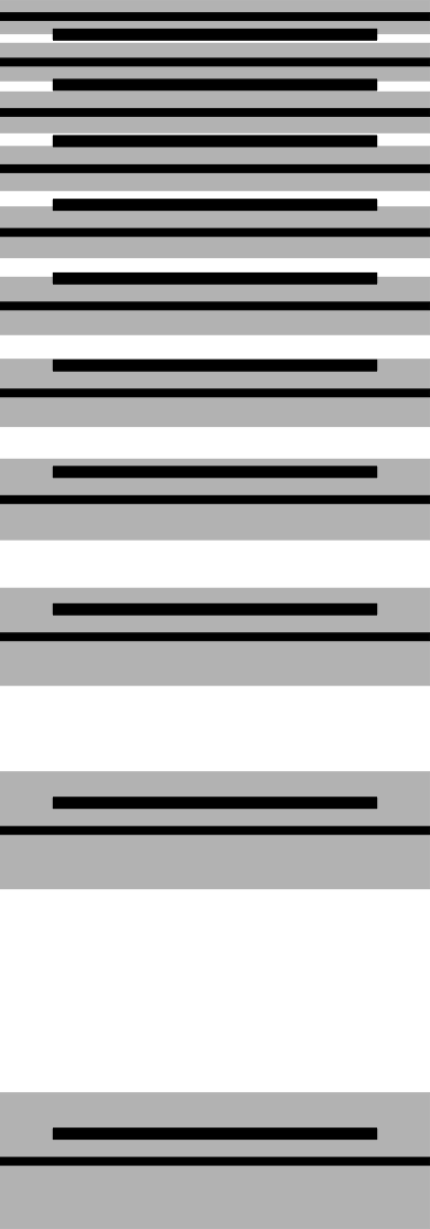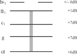 Figure 4. Critical band interactions of intervals. Long dark lines representpartials of a pitch in mid-treble register, such as g1. Shortdark lines represent the partials of tones at the specified interval abovemid-treble pitch. Shaded bands represent critical bands.