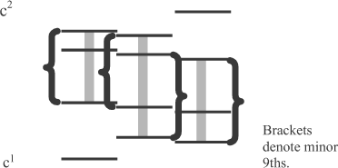 [22] This means, of course, that five tones are heard together as a sonority as in Figure 14c.