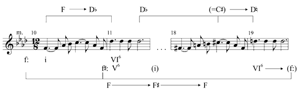 Example 2. Melodic-harmonic cross-references in Schubert's Die junge Nonne