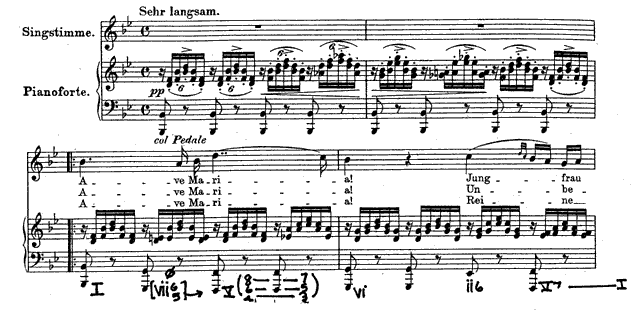 Example 4. Franz Schubert, Opening of Ellen's Gesang III, "Ave Maria" (1825) [GIF format] | Change to DjVu |