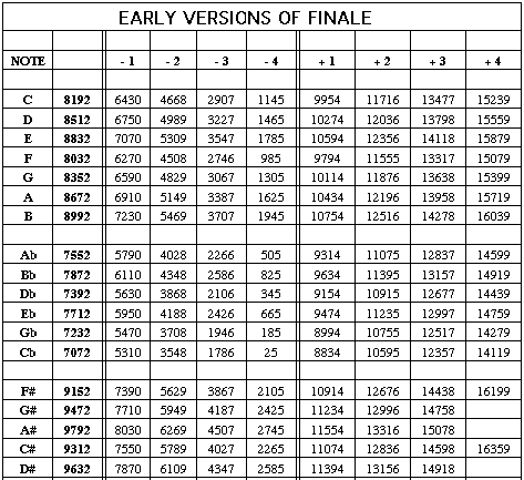 Figure 11. Pythagorean pitchwheel values with comma shifts (older versions)