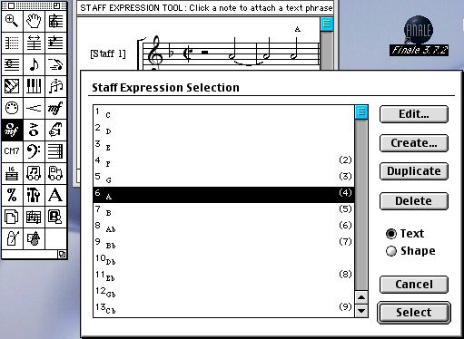 Figure 4. Staff Expression Selection window (version 3.7.2)