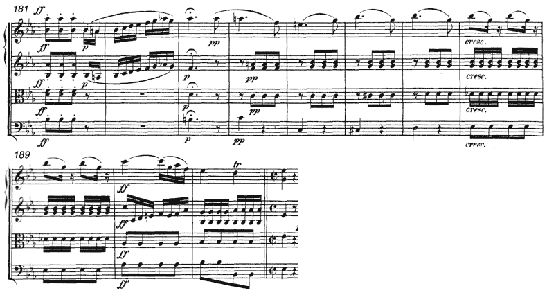 Example 2c. Beethoven, The Creatures of Prometheus, Op. 43, No. 16, Finale, mm. 181-92 (string parts only) [GIF format] | Change to DjVu |