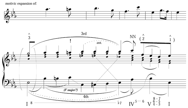 Example 2d. Beethoven, The Creatures of Prometheus, Op. 43, No. 16, Finale, mm. 181-92; voice-leading sketch [GIF format] | Change to DjVu |