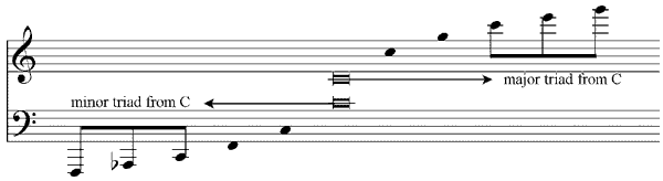 [9] The minor system is less "consistent" than major, while the minor triad is less "harmonious." Undoubtedly, the inferior harmoniousness of the minor triad contributes to the inconsistencies of the minor system, but the precise nature of this contribution is too frequently not spelled out, leaving questions of dependence and priority up in the air: is the minor system, for example, synthesized from pre-existing parts, or is it presented through compositions and analyzed into parts that depend on their systemic membership for existence?
