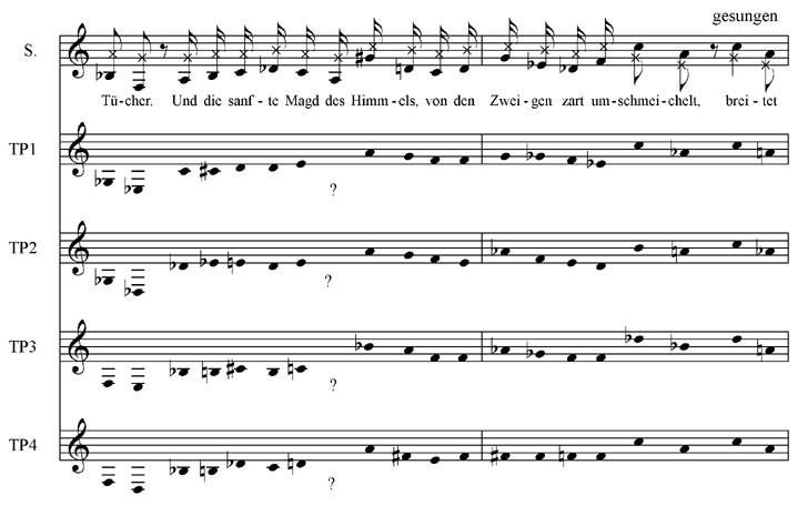 Figure 1. Comparison of Sprechstimme in the four test pressings of "Eine blasse Wäscherin"