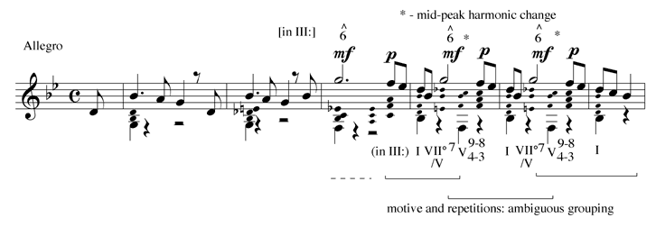 Example 17. Mozart, String Quintet K. 516, 1st movement, mm. 34-39, annotated outer voices [GIF format] | Change to DjVu |