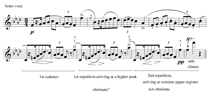 Example 19. Chopin, Mazurka, Op. 7, No. 3, mm. 93-105, annotated melodic line [GIF format] | Change to DjVu |