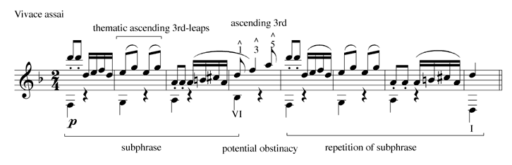 Example 24. Haydn, String Quartet, Op. 76, No. 2, 4th movement, mm. 13-20, annotated outer voices [GIF format] | Change to DjVu |