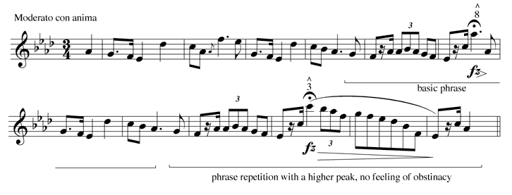 Example 9. Chopin, Mazurka, Op. 24, No. 3, mm. 1-12, annotated melodic line [GIF format] | Change to DjVu |
