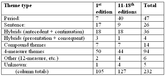 all new dances in the eleventh to eighteenth editions (1701–1728): theme type in the first strain