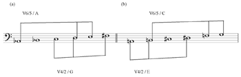 A corollary to the 6–5 voice-leading motions expressed at the opening of “De