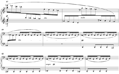 distinct arpeggiating strands interact; the lower edge of the piano�s gesture