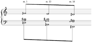 But once so altered, the opening sonority is recast in a tonal role and when D natural returns in m. 4 it functions within the context of an intensified functional dominant harmony, leading (melodically) through an accented passing tone, and on to scale degree one of B minor in m. 6. The past emerges from the future, or said in a different way the past is culled from an individual�s memory recalling a bygone era. And as with all such recollections, that which is invoked takes shape as an imperfect image of what actually transpired in another time, and at another locale.(19) |