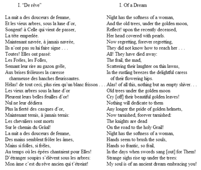 Figure 1. “De rêve,” Debussy’s poem and its English