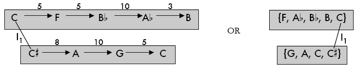 Figure 10. Two simpler displays that more clearly differentiate the two constituent T-sets that fall out of Lewin's rather large K-net