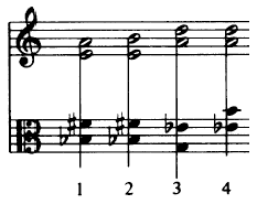 Schoenberg, op. 11, no. 2, four chords excerpted from Lewin's Ex. 9