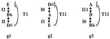 Example 12. K-nets that interpret chords g1, g2 and g3 from Example 12