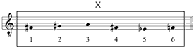 Example 2. X, pitches of Section A1 vocal line (click to enlarge) |