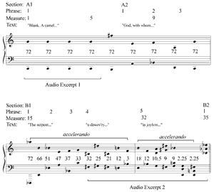 4, word painting for “to be repeated many times” (Audio Excerpts 1 and 2).(18)