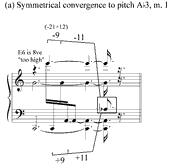 [18] These chords provide the tonal material for the flourishes at the end of Sections A1 and A2 (chords 6 and 13), for the high, sustained vocal A [19] The analytic techniques employed so far introduce the song: large-scale temporal strategies articulate primary poetic features and twelve-tone chords mark important structural pillars. Yet the analysis has barely mentioned the vocal part and there is much more to the accompaniment than a succession of parallel fifths and twelve-tone chords. In fact, seventy-five percent of the song’s pitch material remains neglected.