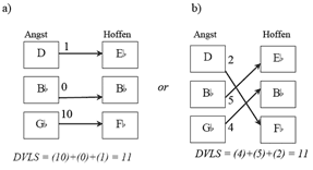 [9] If the original “Hoffen” trichord is transposed, different DVLS numbers emerge. Figure 2 shows that the “Angst” trichord cannot be conventionally or axially isographic with twelve of the twenty-four members from the [016] “Hoffen” family.(12) The figure also illustrates that four different DVLS numbers are possible when the “Angst” trichord is followed by one of the non-isographic, [016] pitch-class sets: 7 and its complement 5, 1 and its complement 11.(13)
