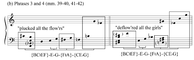 Example 17. Section B2, phrases 1–3, accompaniment 17a | 17b