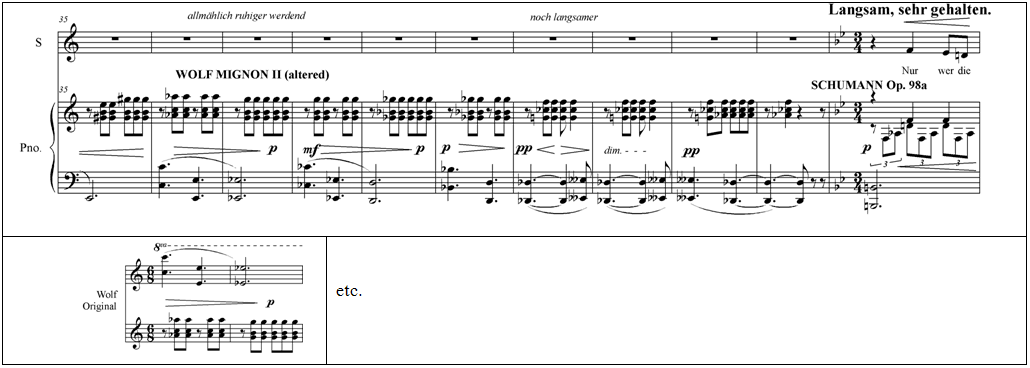 Example 4. The penultimate couplet recomposed with altered versions of Schubert, D. 877/4 and Wolf, Mignon II