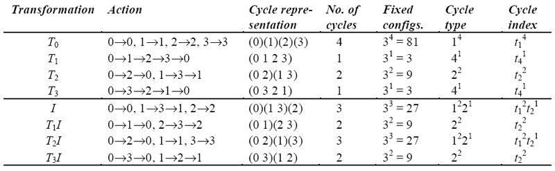 Table 2. Cycle structure of the permutations in the dihedral group D4 (3-color necklace problem)
