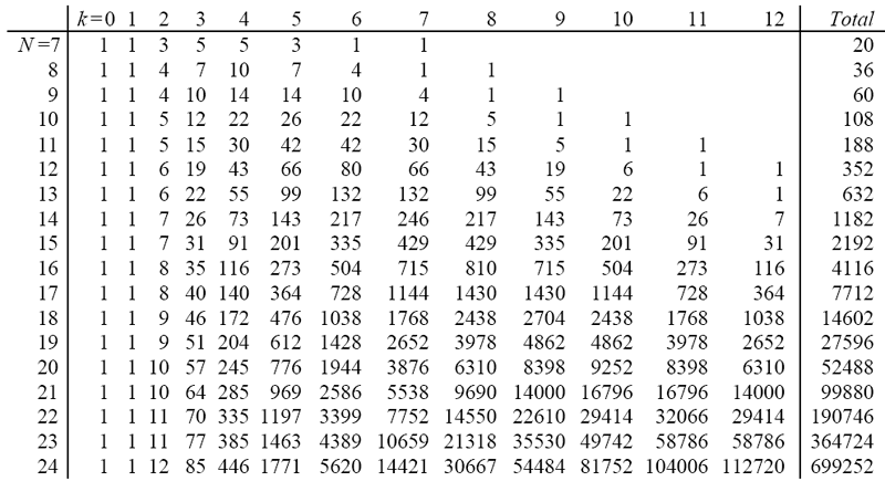 Table 4. Values of ζN(k), the number of Tn classes of k-note chords in an N-note scale