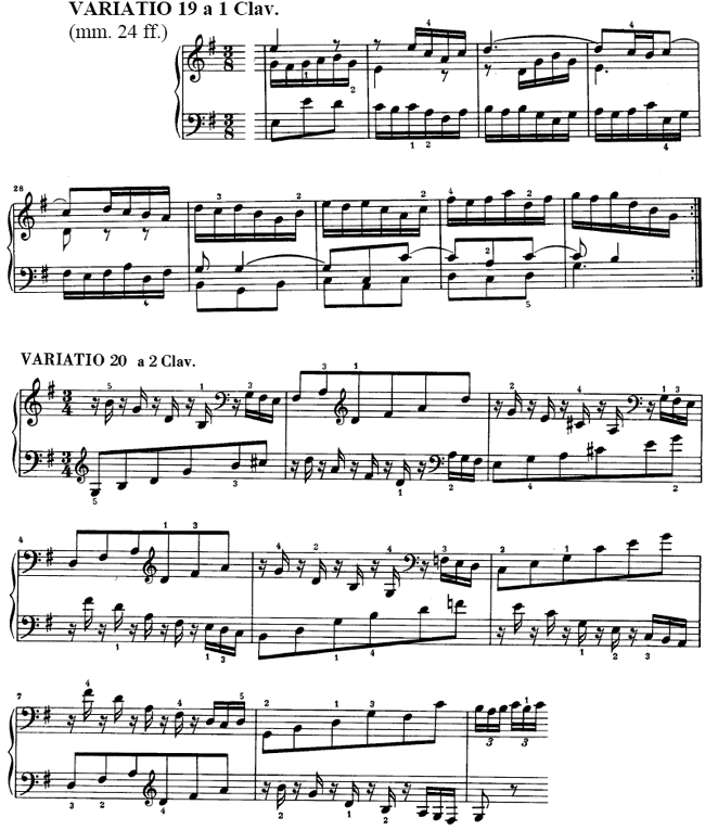 a. transition from Var. 18 into 19 | b. transition from Var. 19 into 20