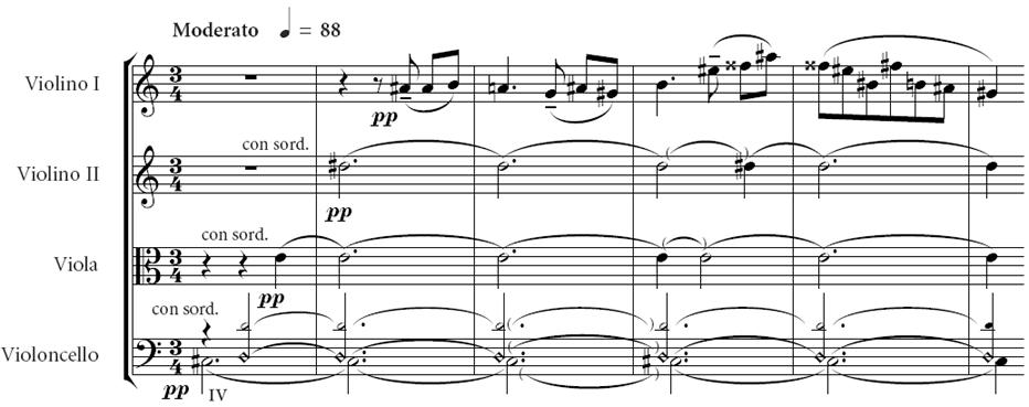Example 1. Bartók, String Quartet No. 3, Prima parte,
