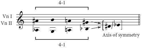 Example 5. Chromatic contradiction and symmetry (Prima parte, m. 37)