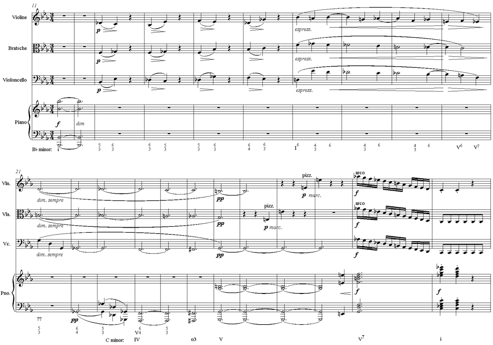 Example 6. Harmonic analysis of op. 60/i, mm. 11–21
