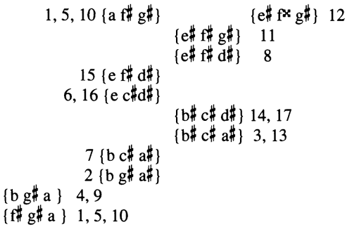 Figure 1. David Lewin’s isolation of (013) forms appearing in the first six measures of Bach’s F