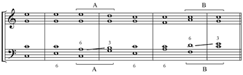 [6.5] Though the notes of the fundamental bass can appear anywhere in the musical texture, Rameau insists that the fundamental bass is “always the lowest and deepest part.”(33) In support of his claim, he quotes from Gioseffo Zarlino’s Le institutioni harmonische, interpreting the Italian theorist’s “bass” as fundamental bass: