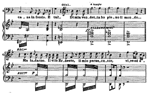 [19] The first-act finale of Semiramide (1823) is also in C major, but its slow movement—known, in a finale, as the pezzo concertato—goes a step further than usual. Rossini begins this concertato in A-flat minor, although he uses a key signature of only four flats; he resolves this extremely distant key to the usual A-flat major midway through the movement. And yes, the final movement is a “noisy stretta � in a bright C major.”