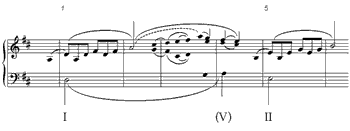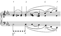 Example 5 presents the tonal structure of the opening theme. In the descending