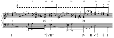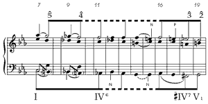 however, he insists on reading the F-major chord in bar 20 as the dominant of