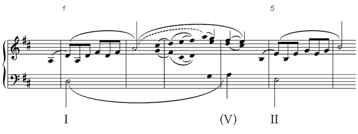 Example 1. Mozart, Piano Sonata in D, K. 576, i (bars 1–6)