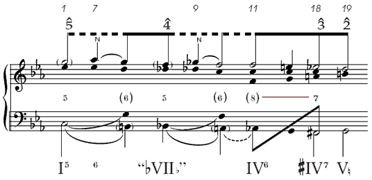 Example 13. Brahms, String Quartet no. 1 in C minor, i (bars 1–19)